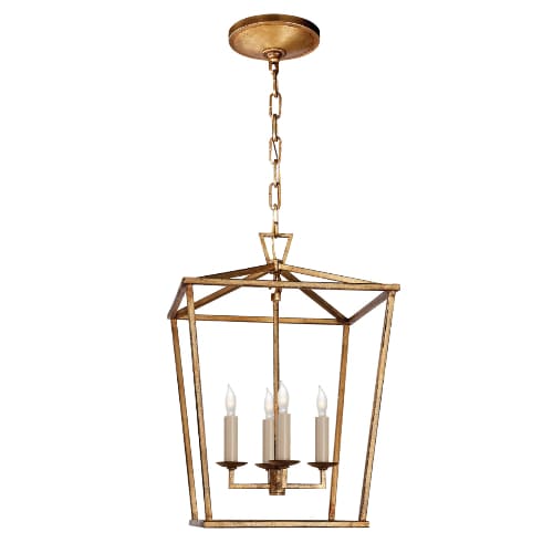 A striking blend of classic form and modern geometry, this lantern‑style fixture from Chapman & Myers features an open steel framework and triangular top loop for a look that anchors entryways or kitchen islands with elegance.